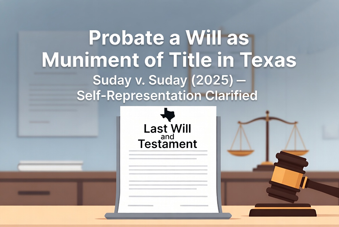 Bottom line: The Texas Supreme Court’s decision in Suday v. Suday is a welcome clarification that expands access to justice for simple, single-beneficiary estates. But it does not eliminate the complexity or the risks of going alone.